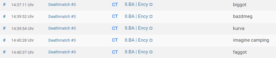 Und "Headhunter" auch durchgehend als "shit" "shit cheater" "fool", obwohl der Admin extra da war aufgrund deren Report und hat bestätigt, dass keiner cheated.