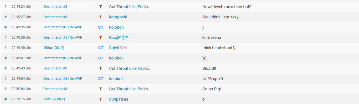 Hier kannst Du Dich wegen Fehlverhaltens anderer Spielern beschweren.