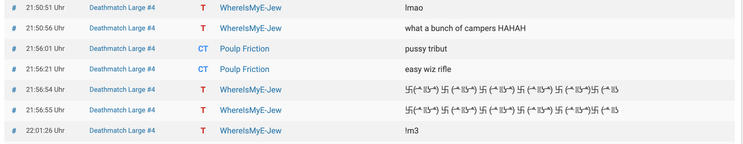 Here you can complain about misbehavior of other players.