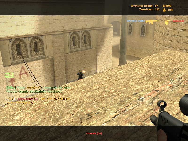 Man muss bei der Map in den Turm, dann in das linke Fenster und Messer auswählen. Dann links auf die Gebäude bunnyhoppen. Ist extrem schwierig.