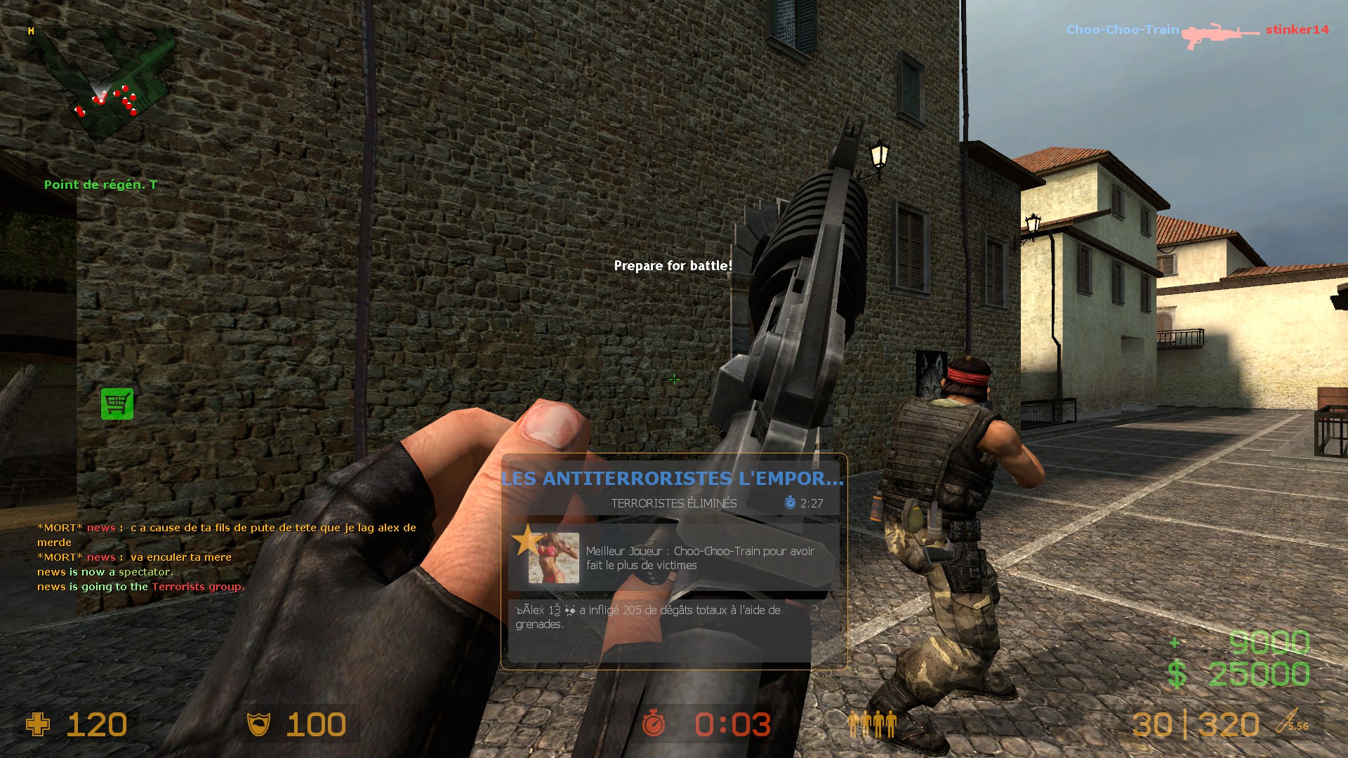 Ban for this player thanks you!!! (translate in english fils de pute =son of bitch, va enculer ta mere= go fuck my mother)