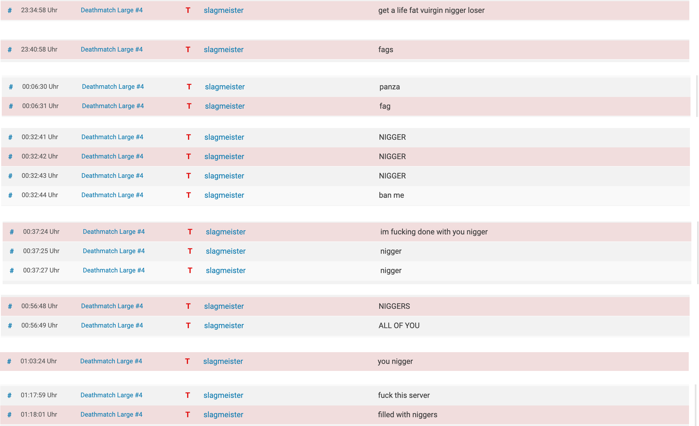 Absolute Katastrophe. War nur am spammen, die ganze Zeit .Machte Premium, Spieler und Server schlecht und beleidigte unentwegt und extrem. Nervte uns alle. Voteban half nicht. Meiner Meinung nach ein Spieler, der auf gar keinen Fall Besserung zeigen wird. Zu tief sitzen die Verletzungen aus der Kindheit. Hoffnungslos...