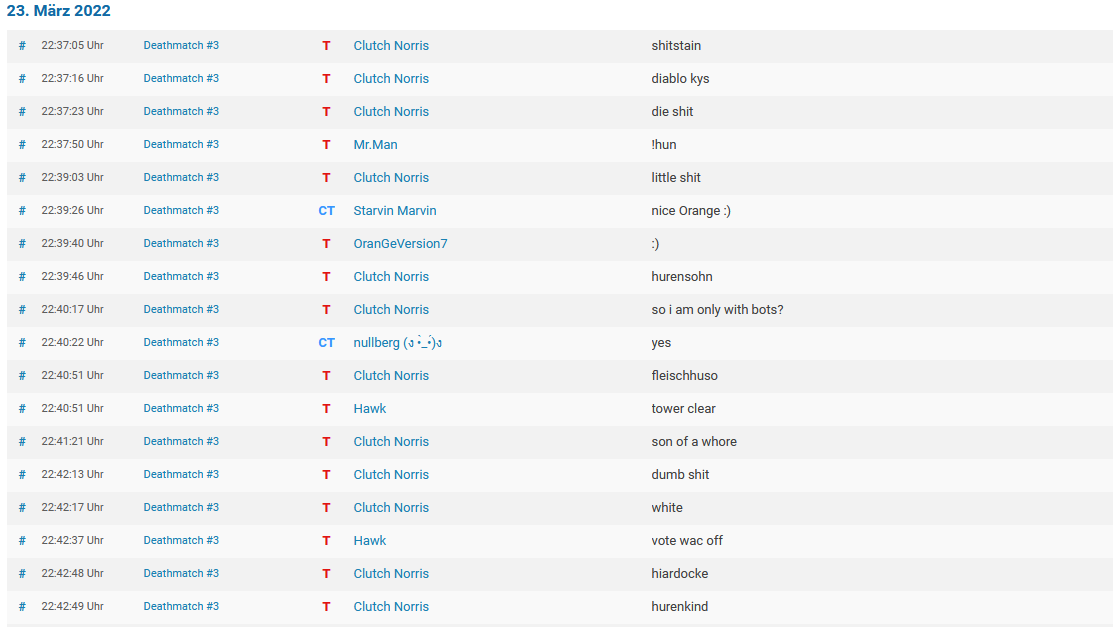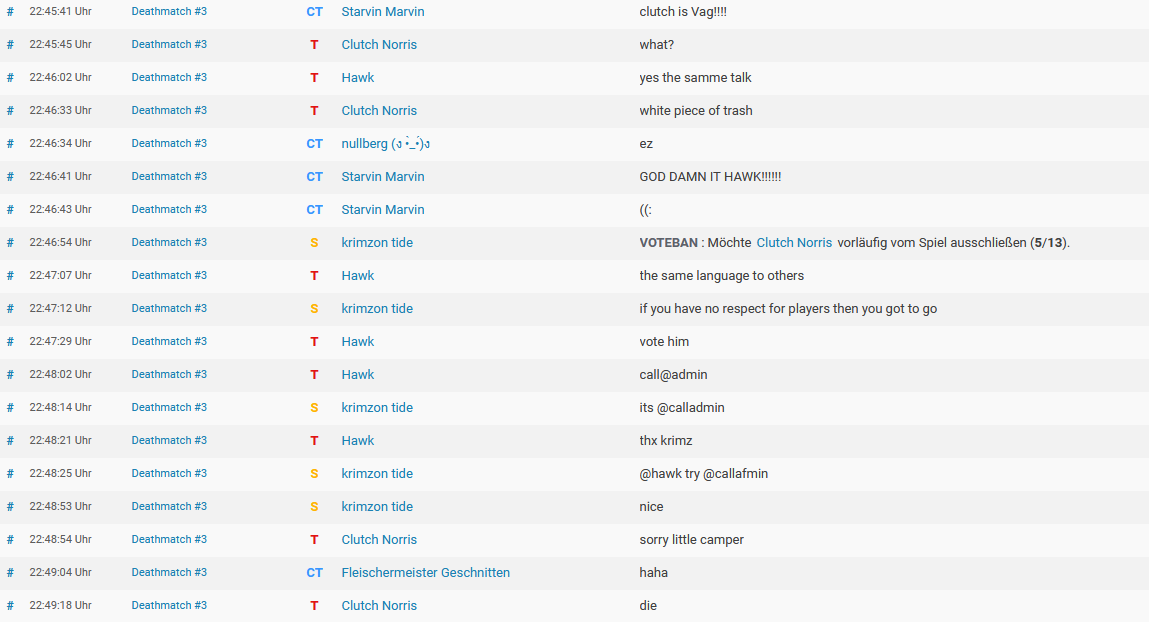 Hier kannst Du Dich wegen Fehlverhaltens anderer Spielern beschweren.