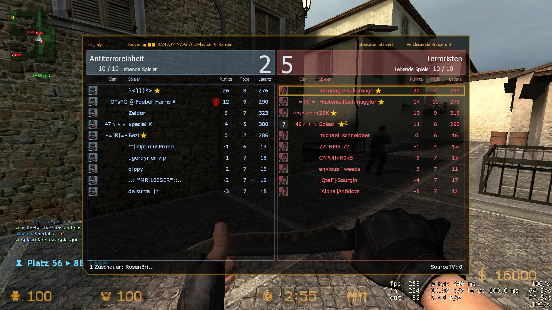Lags auf anderen Servern kann ich nicht bestätigen, weil ich an diesem Abend auch nur auf Randommaps unterwegs war. Aber wie Rampage bereits geschrieben hat, hat er das wohl zumindest auf Dust2 auch erlebt.